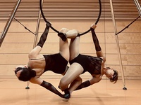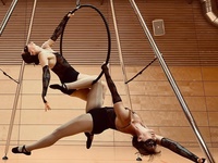 Unsere Show "Feeling Good" mit Katrin & Heidi zeigt fließende Bewegungen mit ästhetischem Ausdruck kombiniert mit Parts auf dem Aerial Hoop. Für diesen Show-Act benötigen wir eine glatte Tanzfläche von 6 x 5 Meter und eine Raumhöhe von mind. 3,50 m (ggf. auch eine Deckenaufhängung mit einer Tragkraft von 400 kg). Seien Sie fasziniert von der Kraft und der Schönheit und genießen Sie unsere einzigartige Performance.
